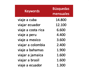 En América Latina, Cuba es uno de los destinos más buscados en google.es, seguido de Ecuador, Costa Rica y Perú.