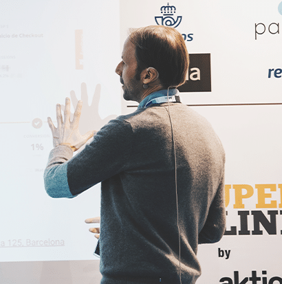 "Ugo sabe mejor que nadie cómo interactuar con el público. Pregunta y escucha a la vez que ofrece respuestas a los oyentes, y es que en cada una de sus ponencias explica cómo eStudio34 cosecha éxitos para sus clientes con las últimas tendencias, técnicas y herramientas."